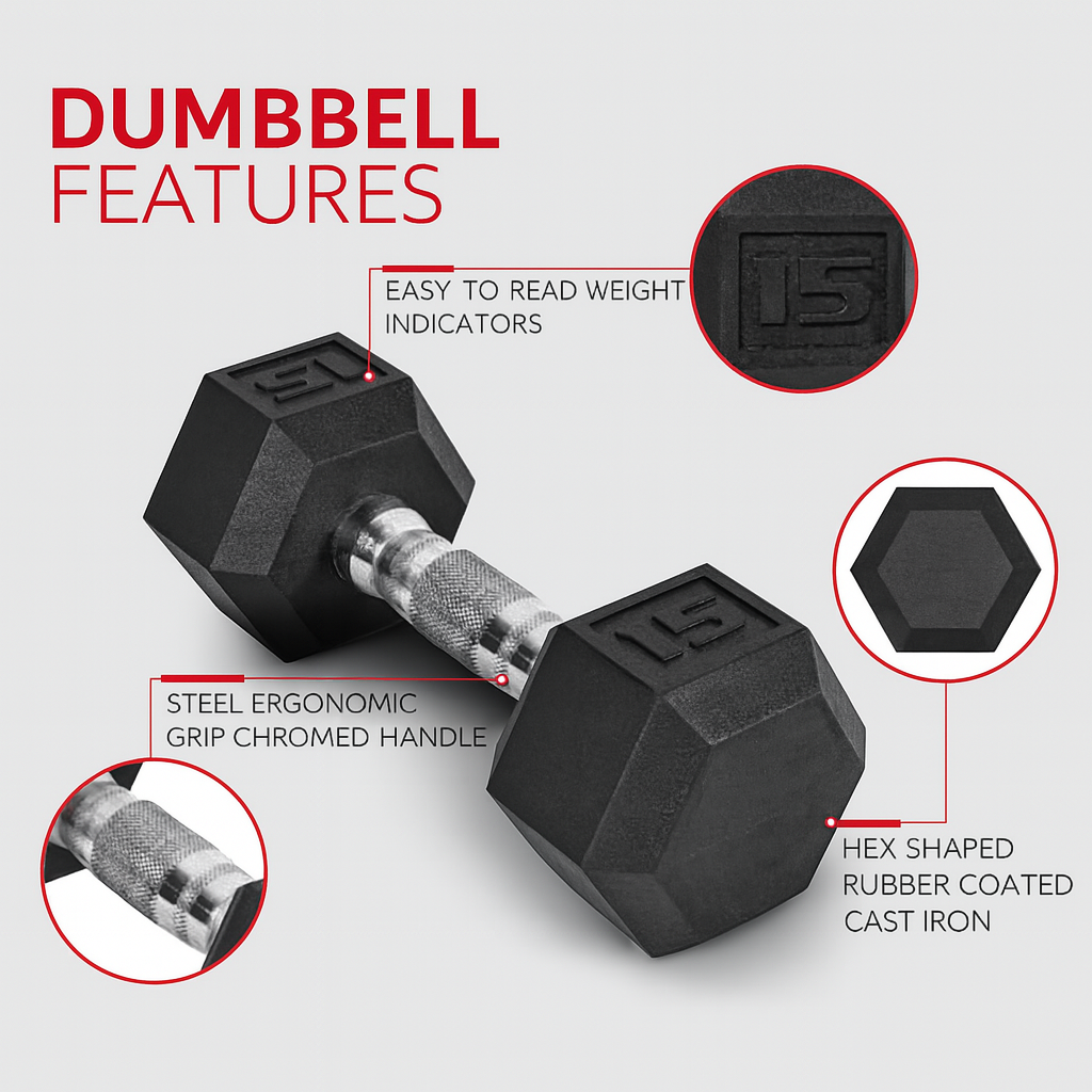Do your dumbbells slide away when you're working out? If you answered yes, it's time to upgrade to the great hex dumbbells. Hexagonal dumbbells consist of two weighted heads on which most of the weight is distributed and a central grip shaft. Each head has a hexagonal shape that prevents the dumbbell from rolling. Hexagonal dumbbells are a popular choice for home gyms because of their non-rolling feature. If you're continuously changing weights, taking them up, and putting them down, it’s high time that you switch to the amazing hex dumbbells. Because of their extra stability, they're also great for floor-based circuits like dumbbell push-ups.